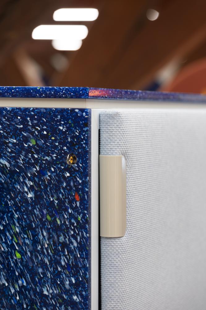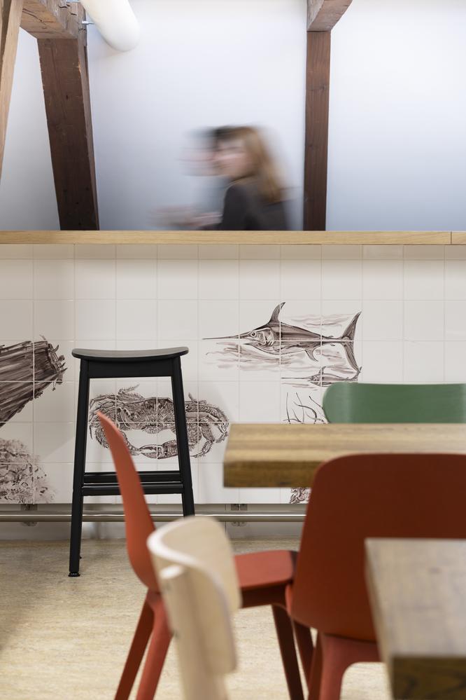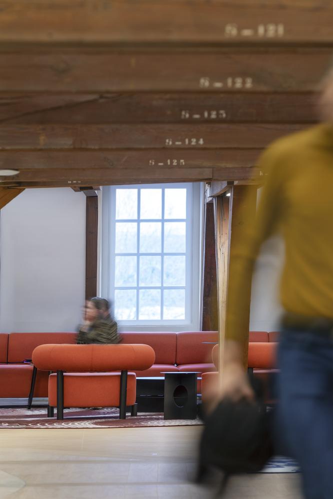 In de geest van de verduurzaming van het gehele museum is er voor het meubilair gekozen voor zoveel mogelijk circulaire materialen, met bestaand meubilair dat hergebruikt en getransformeerd is – van kasten tot belhokjes en een bar gemaakt van herwonnen eikenhout. Het kleurenpalet en de op maat gemaakte tapijten, geïnspireerd op de collectie van het museum, voegen een eigentijdse toets toe.